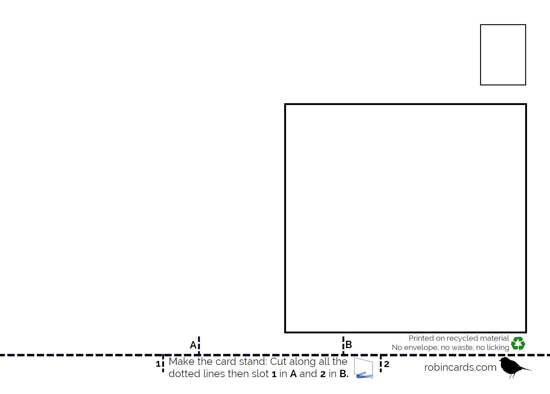 These 100% recycled single cards can be purchased even without the compostable wrapping, and are sent to you in a recycled envelope. In addition, each card has the required design to allow the receiver, with nothing more than a pair of scissors, to create a stand for the card, so they can place it front and centre of their mantelpiece.